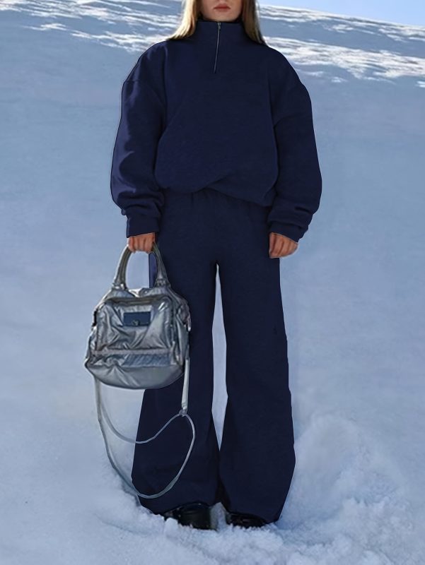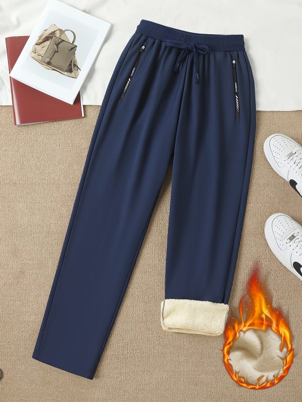 1pc Women’S Winter Pants – Thermal Insulated Non-Stretch Trousers with Drawstring Waist, Navy Blue Cold Weather Pants for Gym, Everyday & Formal Outfits – Non-Stretchy Leg Pants, Ladies Winter Pants, Casual Outdoor Wear, Elastic Waistband, Warm Fleece Lining, Gym Wear, Classic Design, Durable Fabric, Fitness Enthusiasts