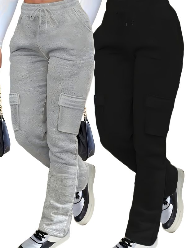 2pcs Fleece-Lined Jogger Pants 2pcs Women’s Casual Jogger Pants – Soft Fleece-Lined, Elastic Waistband, Drawstring, Loose Fit, Solid Color (Black & Gray), Perfect for All Seasons, Comfortable Clothing | Relaxed Fit Pants | Jogging Pants