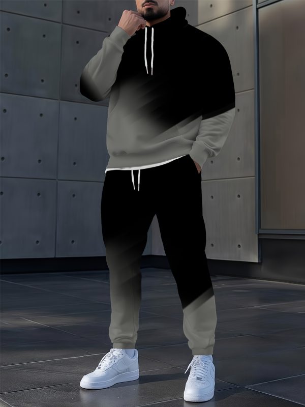 2pcs Men’s & Women’s Gradient Purple-Black Ombre Full-Body Print Hoodie & Jogger Set – Matching Couple Tracksuit with Hooded Sweatshirt & Drawstring Pants, Machine Washable Winter Warmth Casual Sportswear Outfit