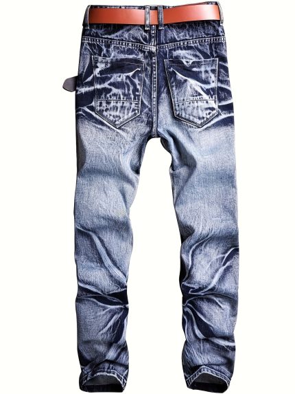 Men’s Casual Black Denim Jeans with Details, Comfortable Mid-Rise, Loose Fit, Machine Washable, Perfect for Casual Attire