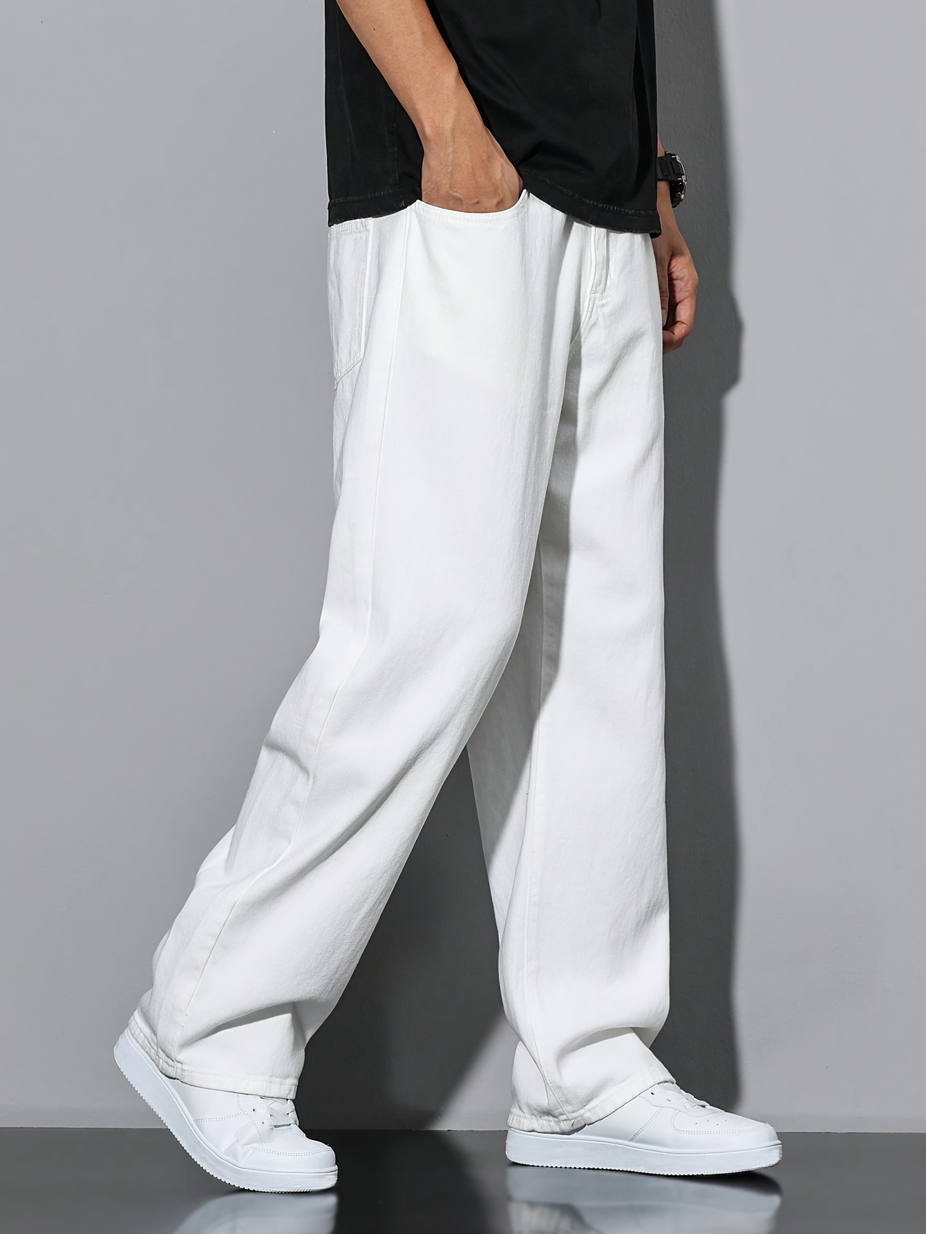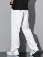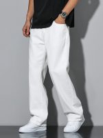 1pc Loose Straight Classic Men’s Jeans, Pure White, Casual And Elegant, Comfortable to Wear On The Upper Body, Stylish In Design, Machine Washable, Suitable for All Seasons, A Must-have Trendy Item for Adult Men.