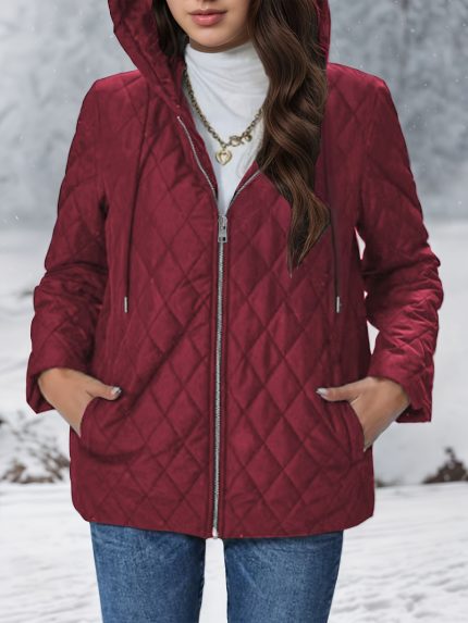 Women’s Burgundy (or White) Winter White Jacket-like Coat – Full-Zip Hooded Outerwear with Button-Free Closure, Machine Washable, Quilted Look for Fallu002FWinter Warmth, Casual & Dressy Occasions (No Bulk)
