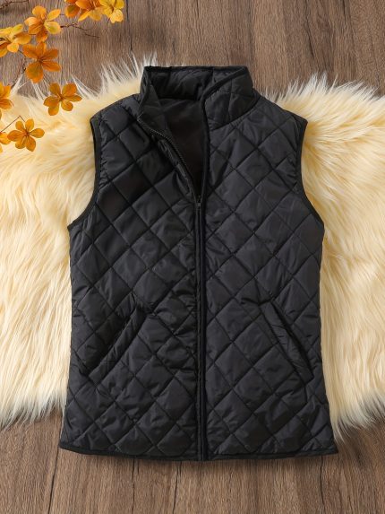 Women’S Sleeveless Vest – Lightweight Warm Jacket for Fallu002FWinter, Stand Collar Zip-Up Coat with Flared Hem, Non-Stretch Fabric for Beach, Gym, Outdoor Activities – Elegant Casual Outerwear, Gym Wear, Sporty Design, Durable Construction