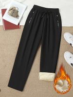 1pc Women’S Winter Pants – Thermal Insulated Non-Stretch Trousers with Drawstring Waist, Navy Blue Cold Weather Pants for Gym, Everyday & Formal Outfits – Non-Stretchy Leg Pants, Ladies Winter Pants, Casual Outdoor Wear, Elastic Waistband, Warm Fleece Lining, Gym Wear, Classic Design, Durable Fabric, Fitness Enthusiasts