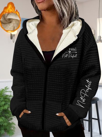 Women’S Casual Waffle Hooded Zip-Up Jacket – Thick Fleece-Lined, Geometric Pattern, Machine Washable, Black with White Trim, Long Sleeve, Fallu002FWinter Outerwear, Casual Winter Wear | Hooded Jacket | Jacket, Women’ Plu Size Long Fur Coat Red, Fur Coat For Women Plu Size, Fur Coat Women Plu Size, Plu Size Fur Coat, Royal Blue Winter Jacket For Women, Jacket For Women Fall, Hooded Anorak, Thermalu002Fheavyweight Winter Jacket For Women