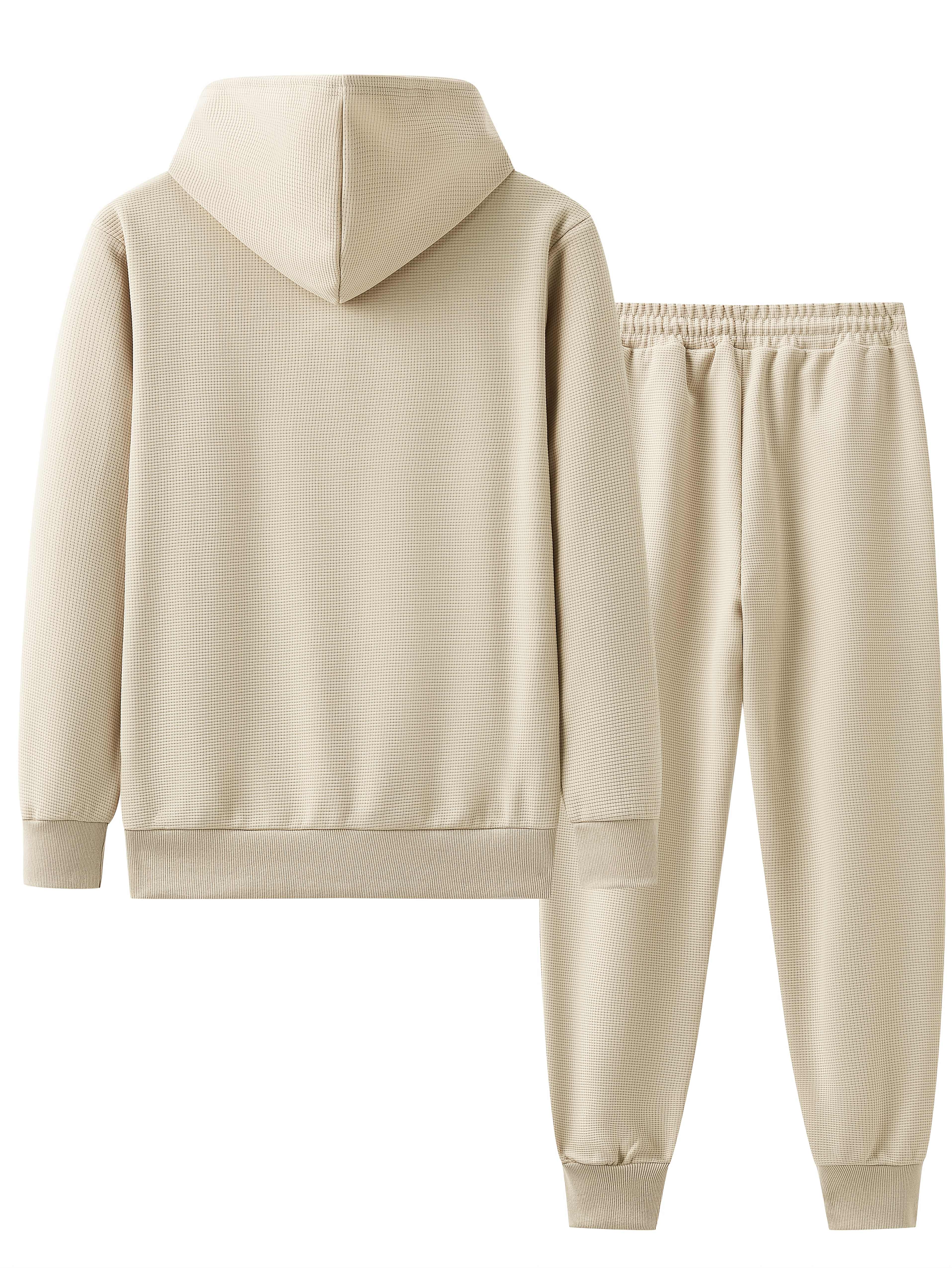Home Men's Sets 2pcs Men’s Heavyweight Waffle Knit Thermal Hooded Sweatsuit Set – Oversized Hoodie & Jogger Pants, Thick Winter Warmth, Casual Solid Black Tracksuit, Comfortable Matching Outfit for Fall and Winter Layering, Long Sleeve Drawstring Pants with Pockets, Relaxed Fit for Casual Attire