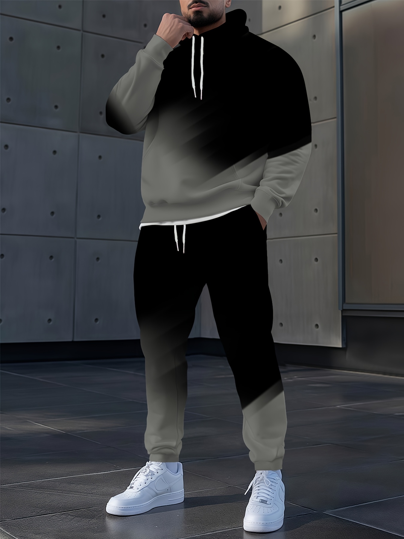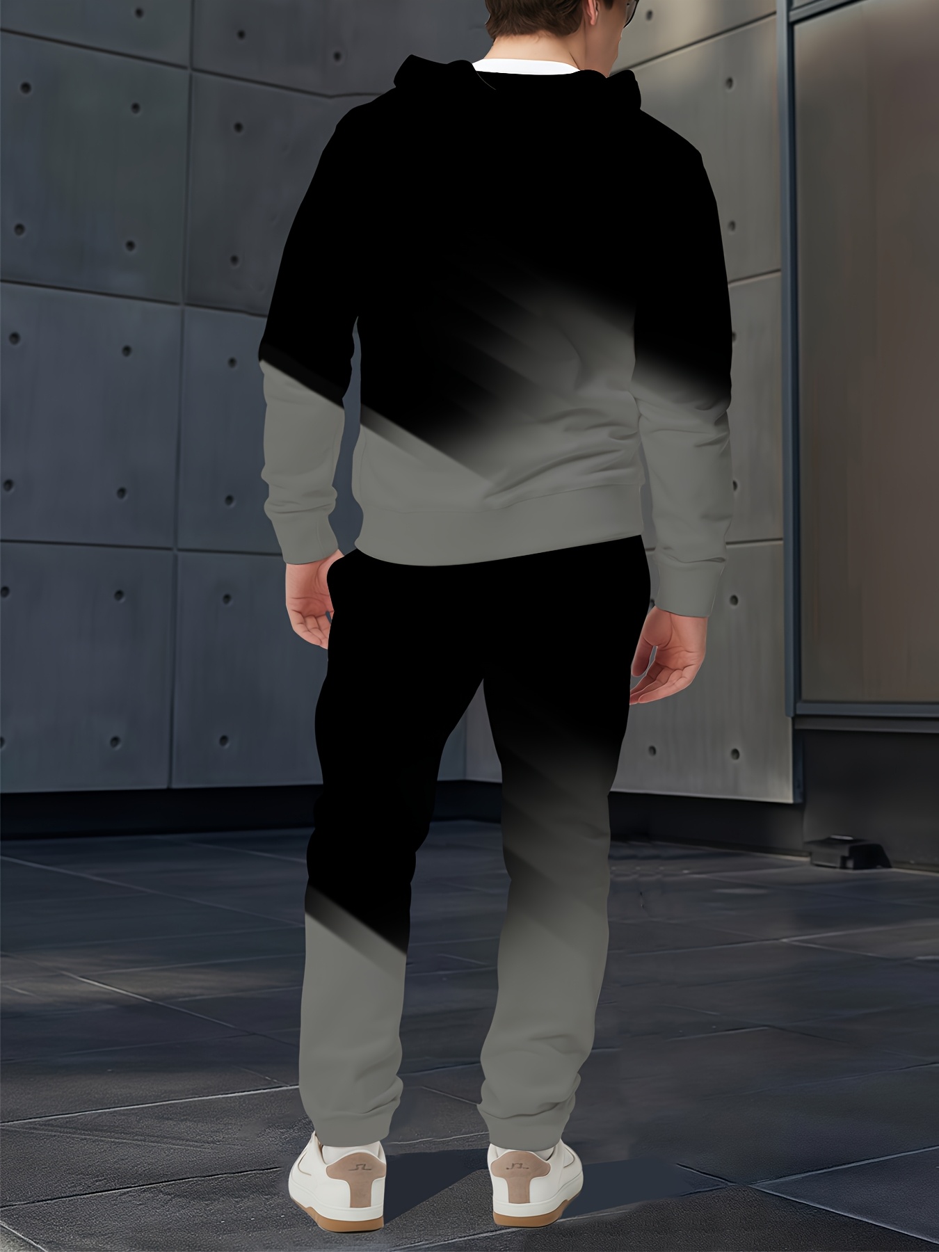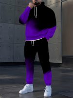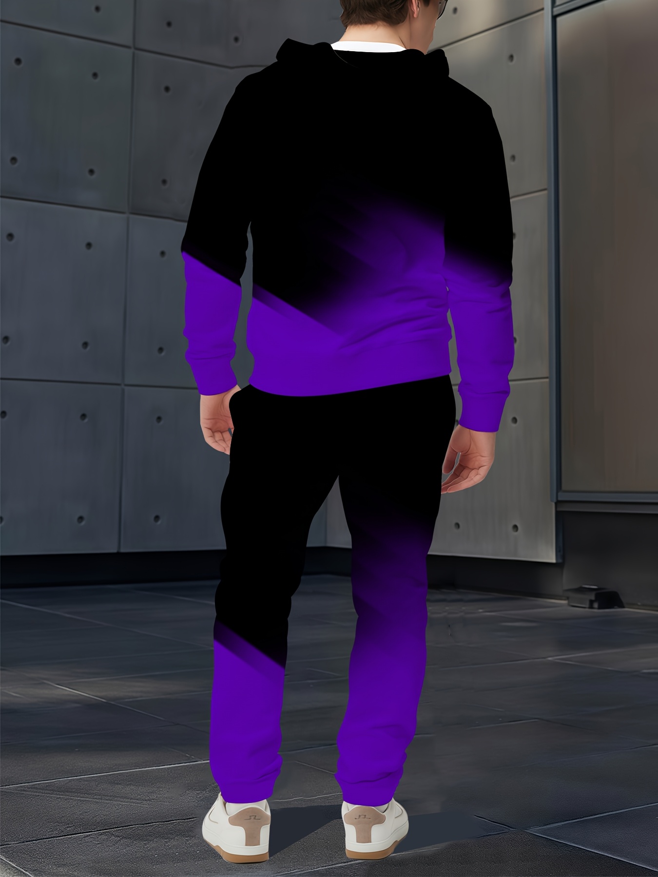 Home Men's Sets 2pcs Men’s & Women’s Gradient Purple-Black Ombre Full-Body Print Hoodie & Jogger Set – Matching Couple Tracksuit with Hooded Sweatshirt & Drawstring Pants, Machine Washable Winter Warmth Casual Sportswear Outfit