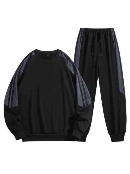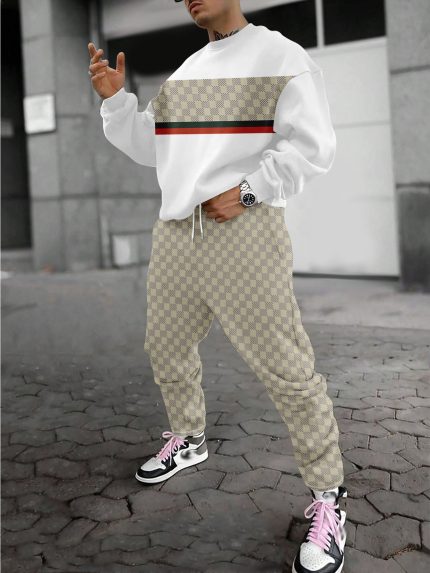 Warm Fleece Sportswear New Style Men’s Casual Sportswear Set – Round Neck Pullover And Tapered Pants – Warm Fleece Long-Sleeve And Long-Pants Outfit With Creative Brown Label Design