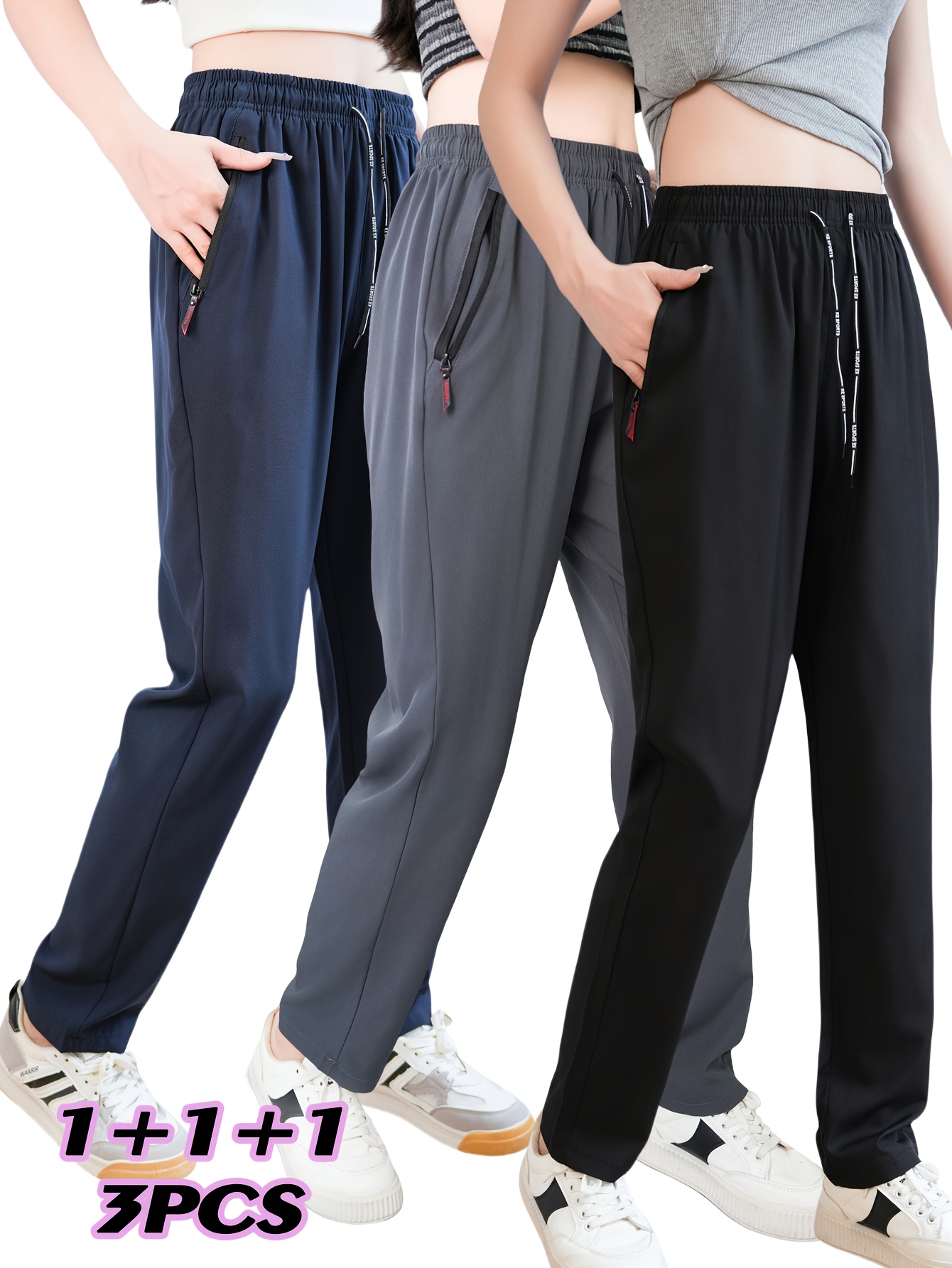 3pcs Women’S High-Waisted Athletic Pants – Non-Stretchy Workout Leggings with Zipper Closure, Navy – for Gym, Running, Yoga, Everyday Casual – Non-Stretch Fabric for Stability & Support – Springu002FFall Fitness Pants, Workout Leggings, Yoga Apparel