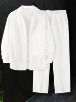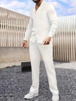 Be the first to review “Elegant Shirt Set Casual Elegant Men’s Striped Texture Button-Up Shirt and Pants Set – Polyester, Long Sleeve, Button Detail, Ideal for Springu002FFall” Cancel reply