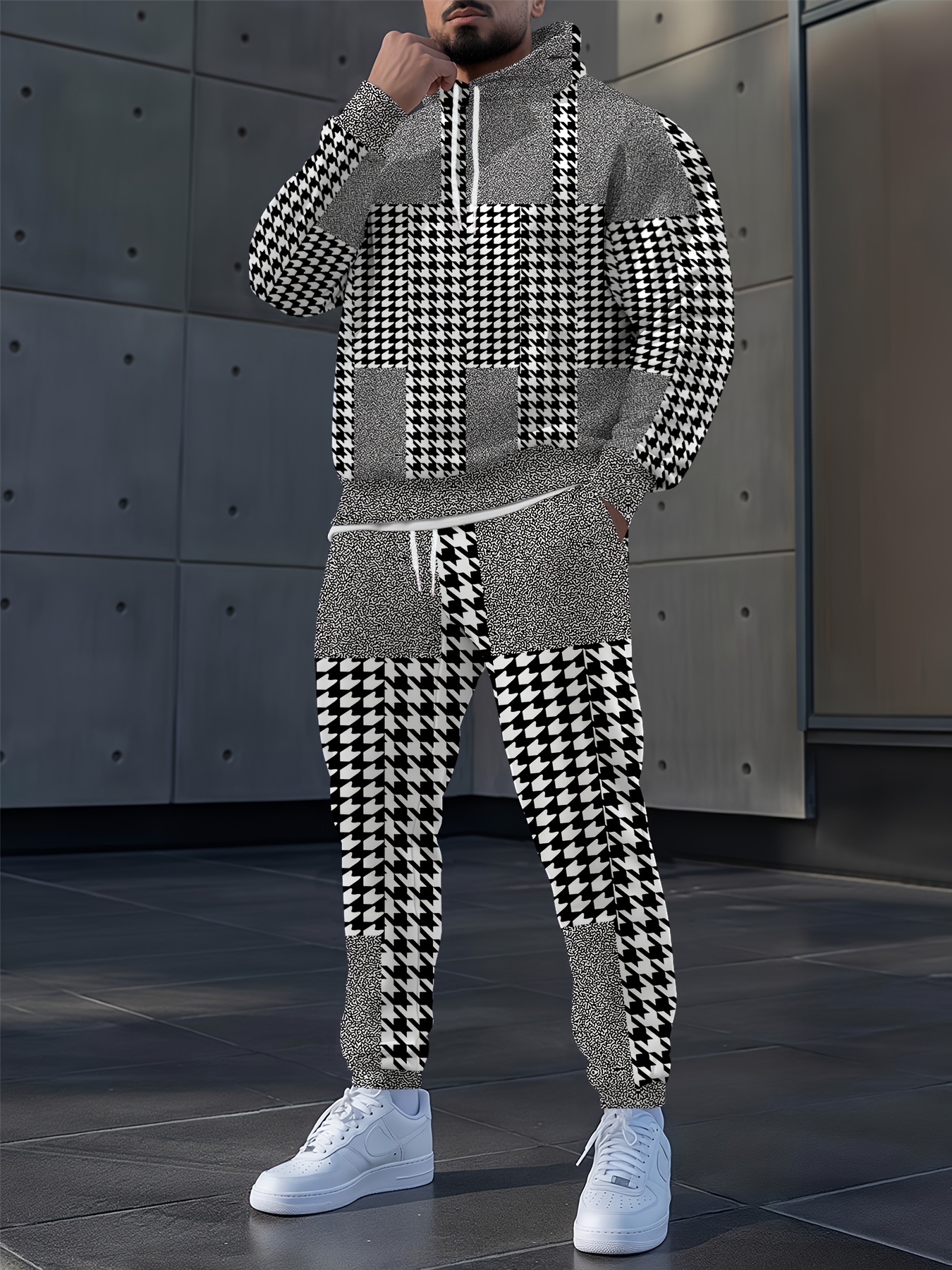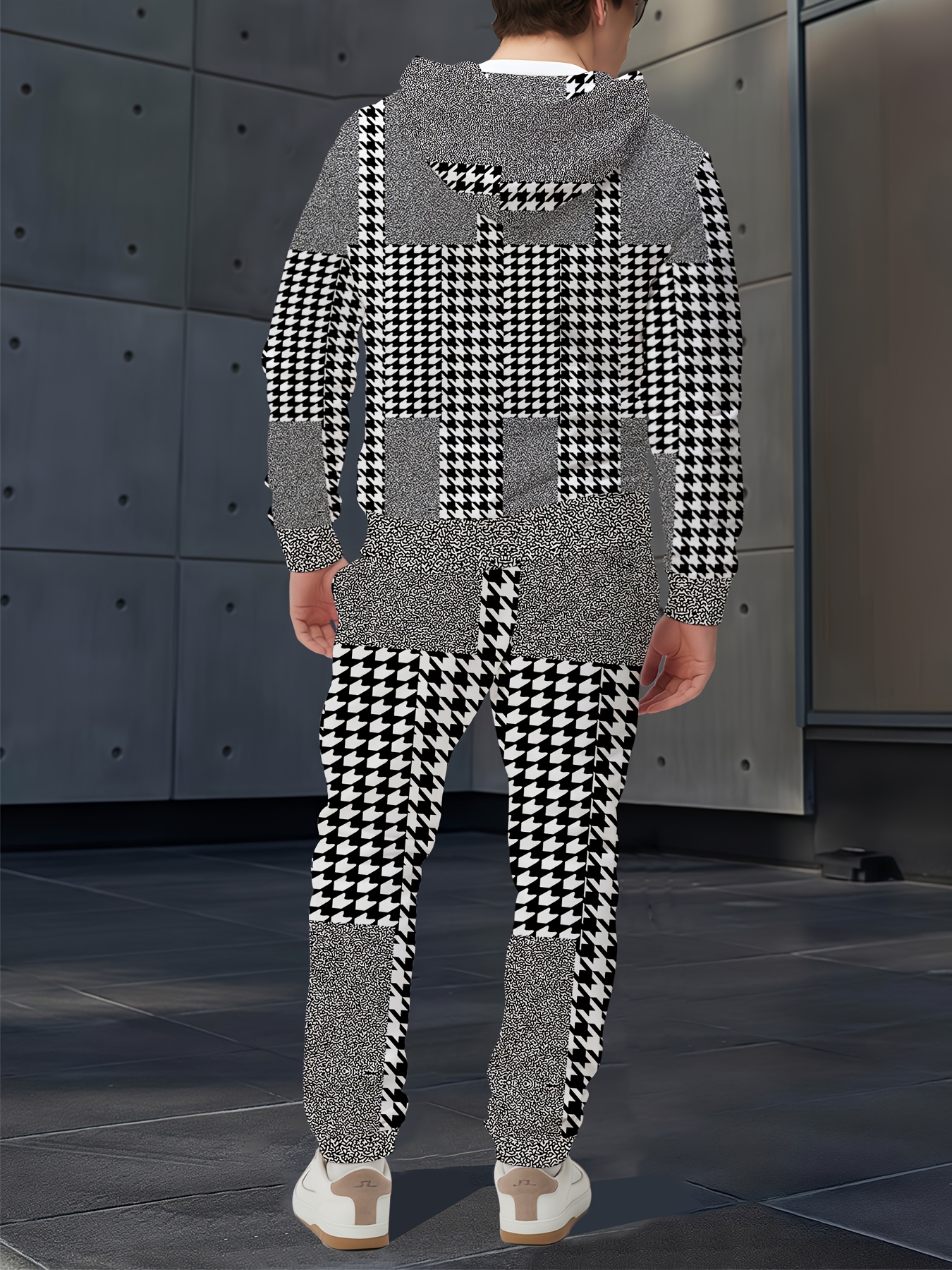 Houndstooth Print Hoodie & Joggers Black & White Checkered Houndstooth Print Hoodie & Joggers Set – Casual Long Sleeve with Pockets, Stretch Fabric, Machine Washable – Full Print, Digital Print, Hooded Sweatshirt for Couples