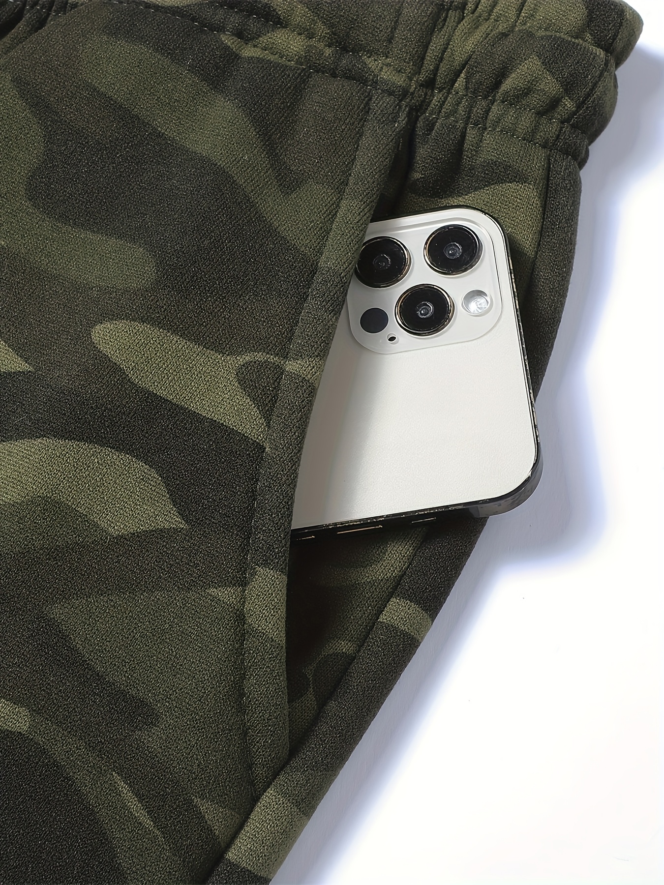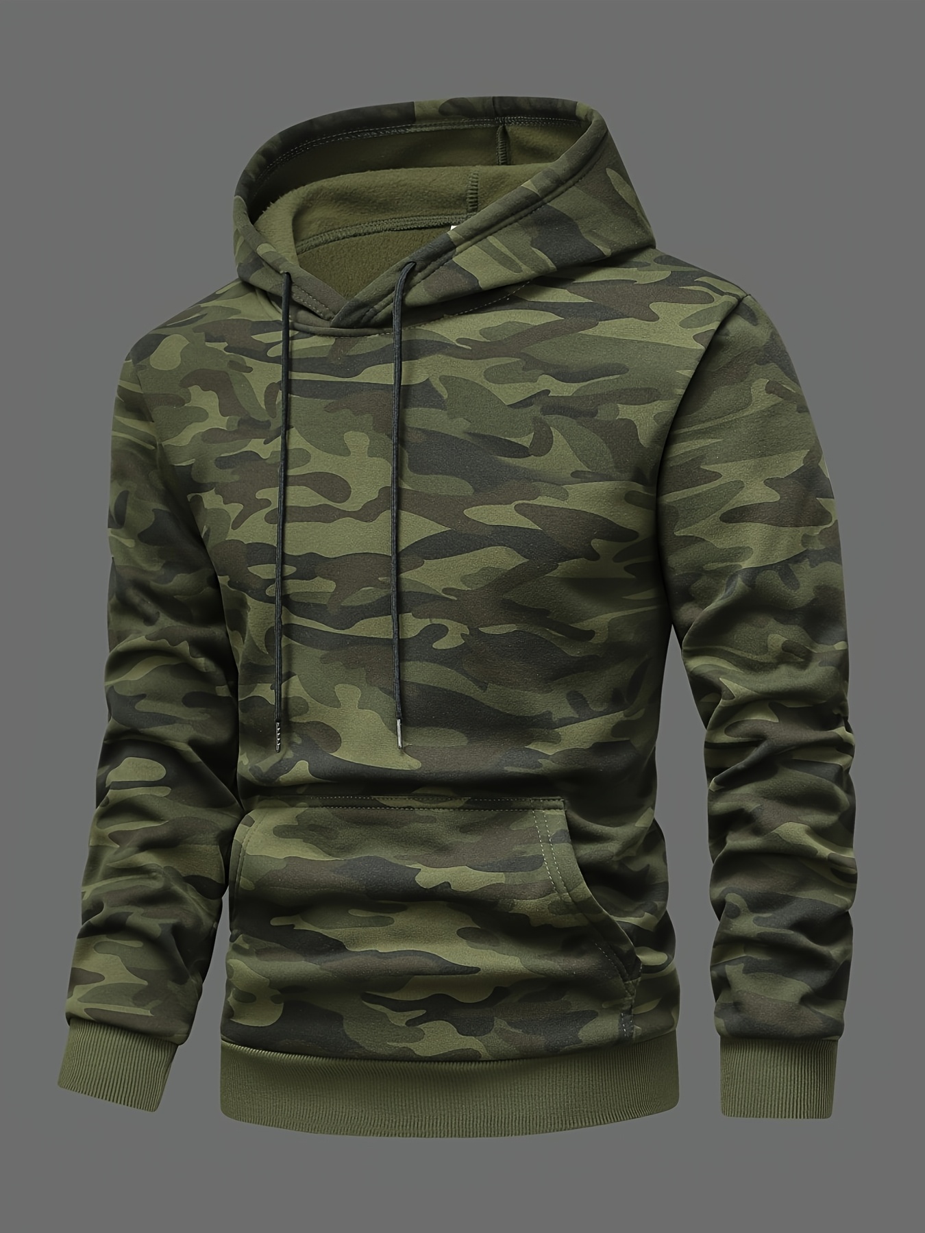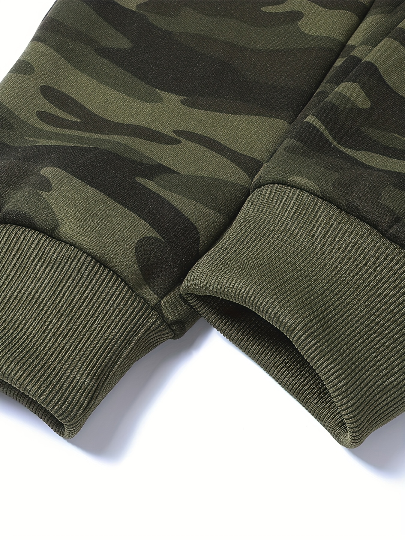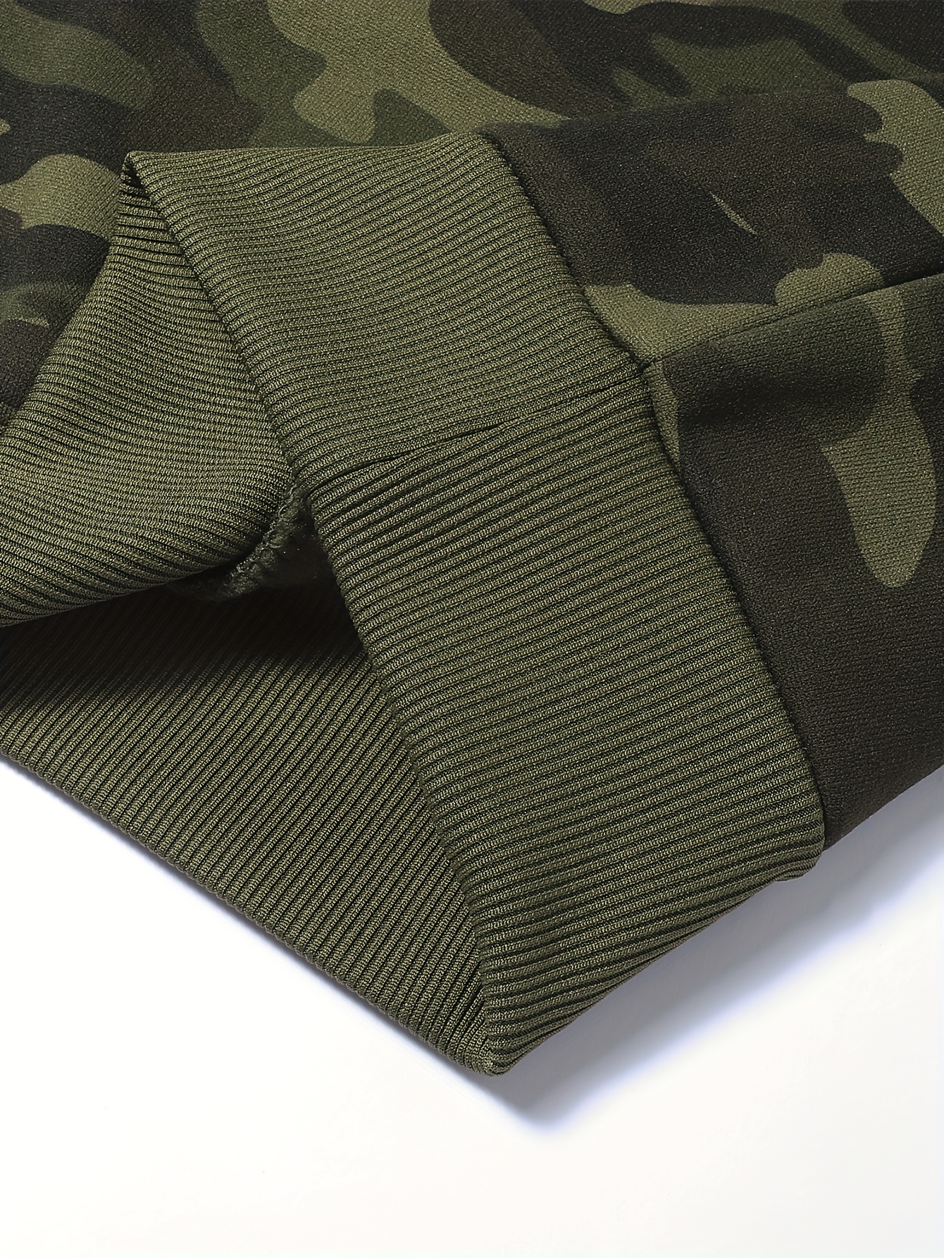 Home Men's Sets Men’S Camo Hooded Sweatshirt & Pants Set – Olive Green & Camouflage, Long Sleeve, Non-Stretch Fabric, Casual Outdoor Wear, Springu002FFall Collection, Casual Outdoor Wear | Camouflage Pattern | Nonstretch Fabric
