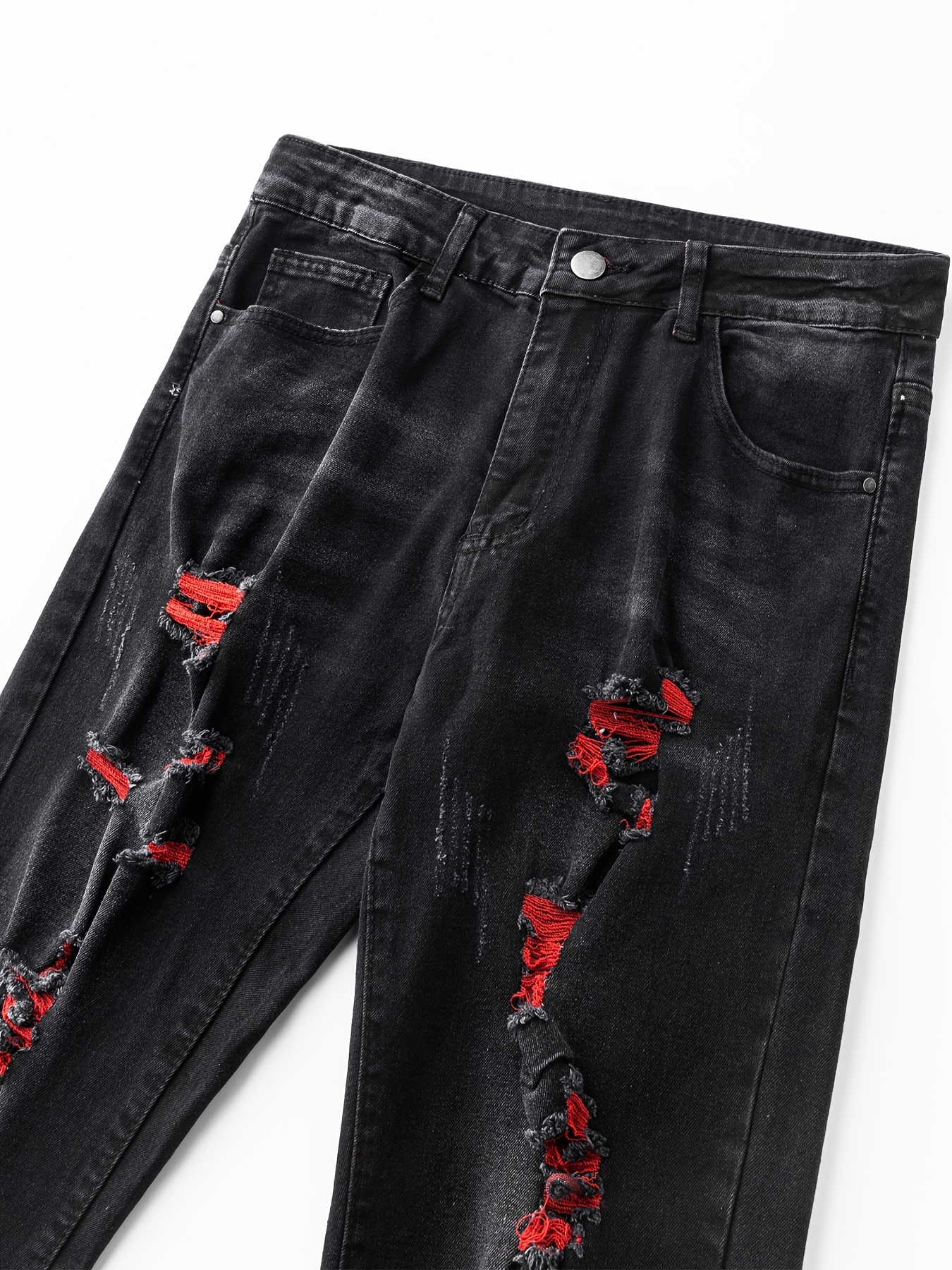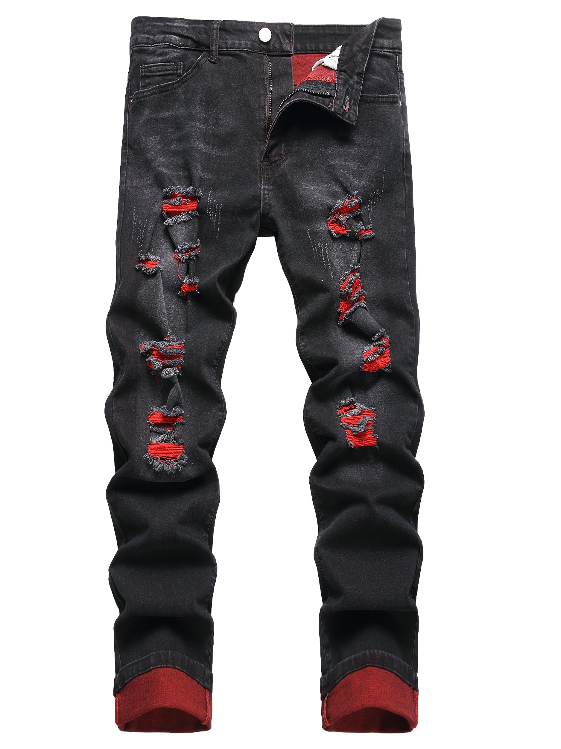 Men's Retro Golden Distressed Imitation Jeans - Slim-Fit Ripped Washed Denim with Button Closure, All-Season Comfort, Hand Washable Regular Length Casual Pants, Comfortable Denim, Durable Denim Fabric $26.89