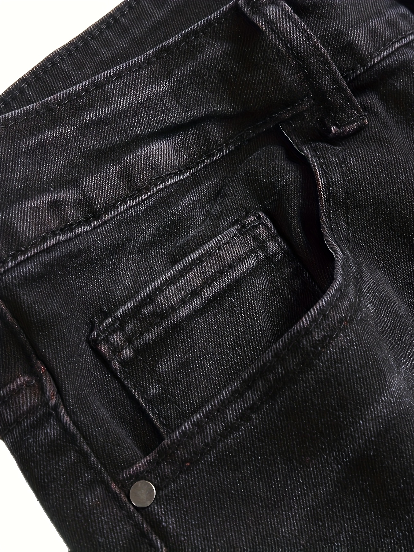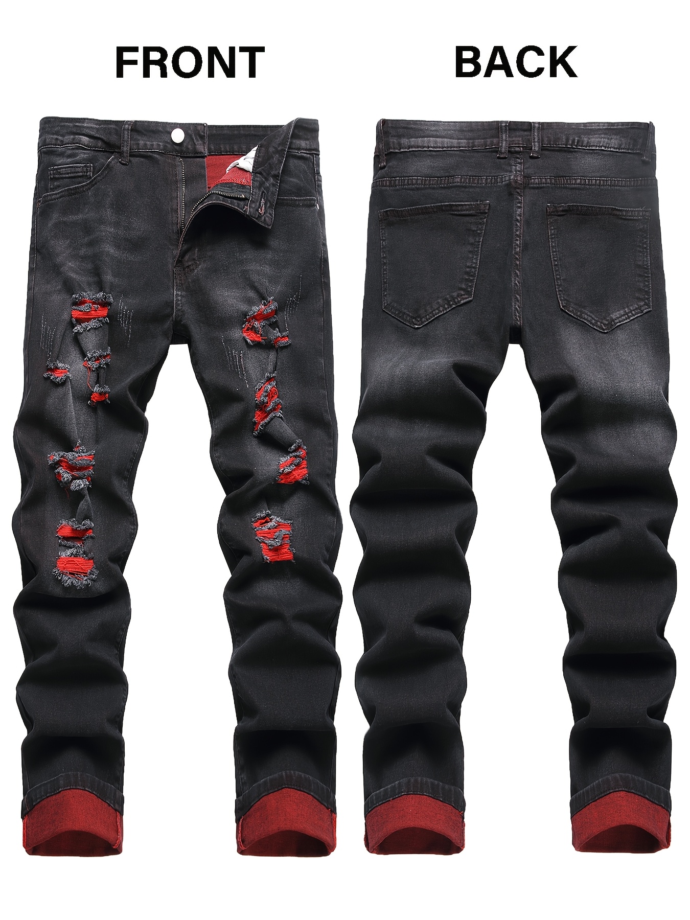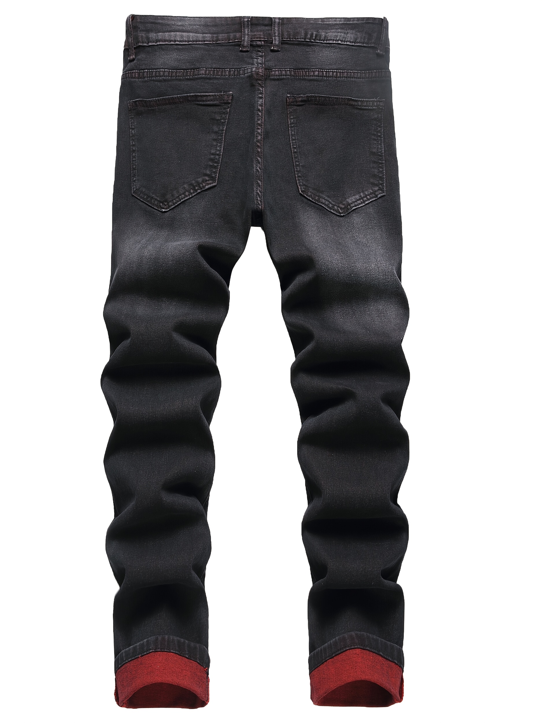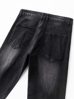 Men’s Casual Black Denim Jeans with Details, Comfortable Mid-Rise, Loose Fit, Machine Washable, Perfect for Casual Attire