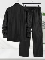 Be the first to review “Men’s Long Sleeve Shirt and Pants 2pcs Set, Wavy Stripe Texture Long Sleeve Shirt with Lapel Button-Up Top and Trousers, Casual Solid Color Outfit” Cancel reply