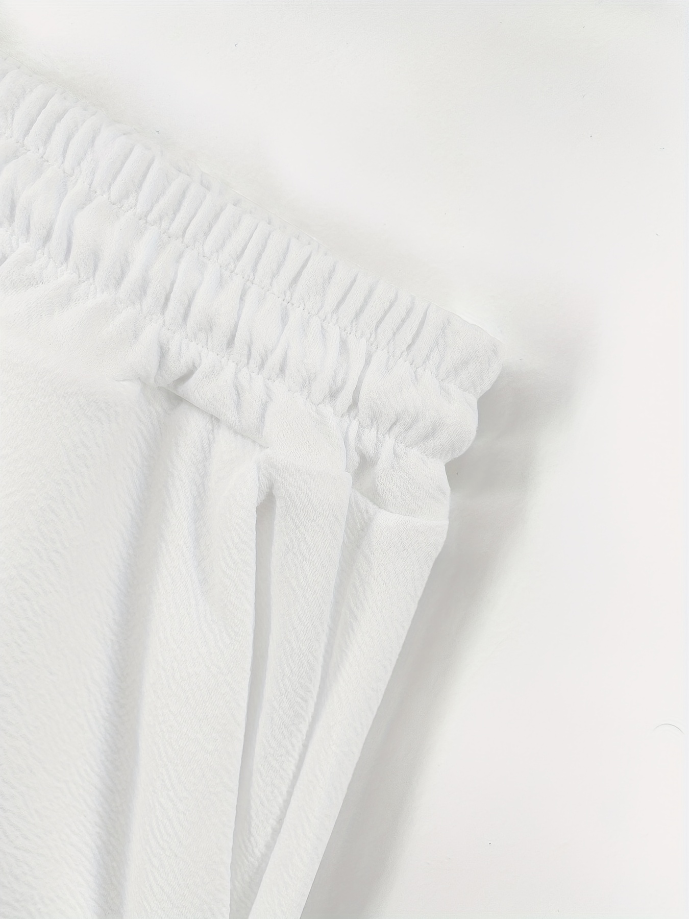 Men’S Simple White Textured Long Sleeve Shirt and Pants Set – Casual, Solid Color, Regular Fit, All-Season Wear, with Pockets, for Men
