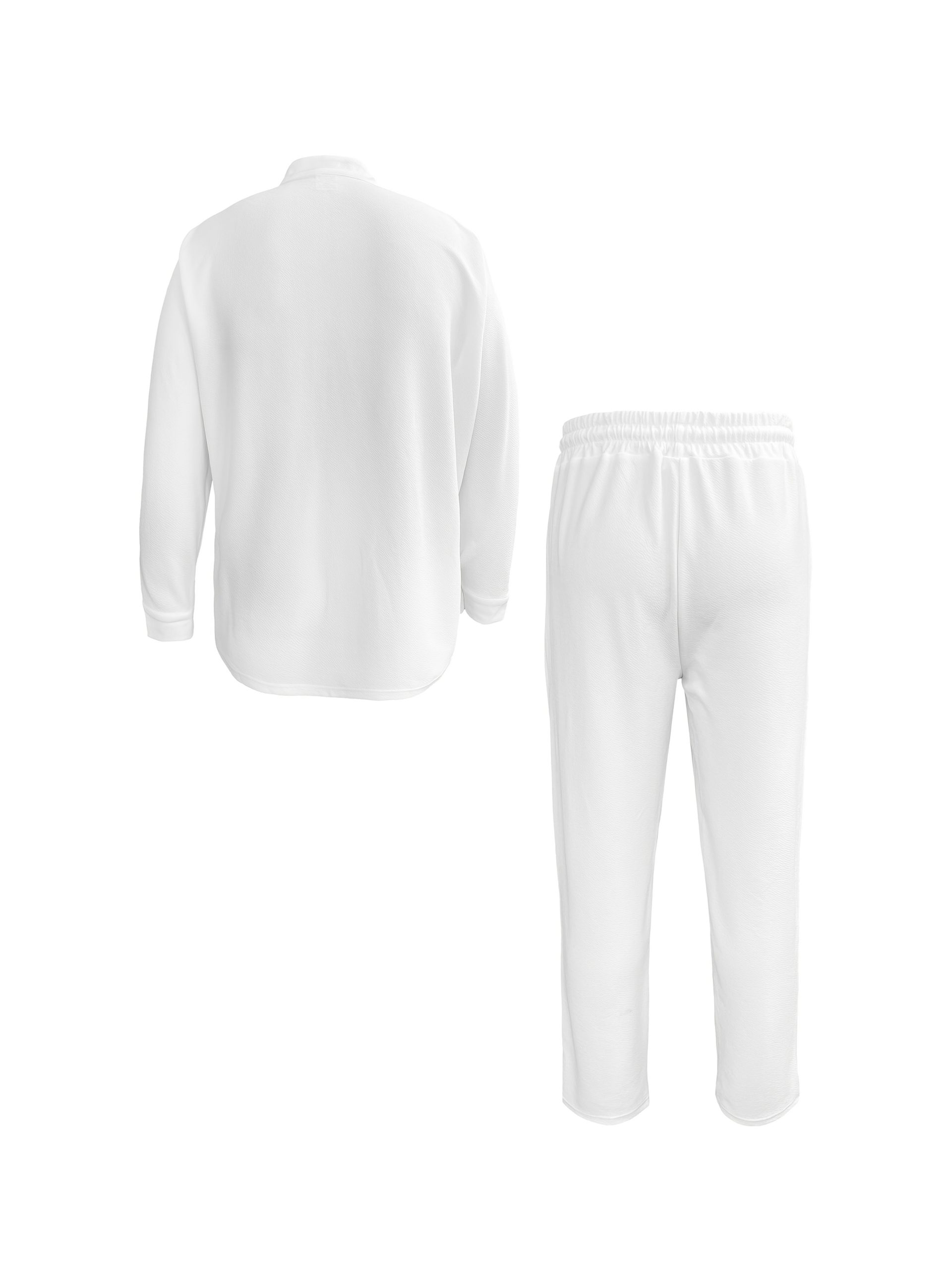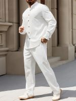 Home Men's Sets Men’S Simple White Textured Long Sleeve Shirt and Pants Set – Casual, Solid Color, Regular Fit, All-Season Wear, with Pockets, for Men
