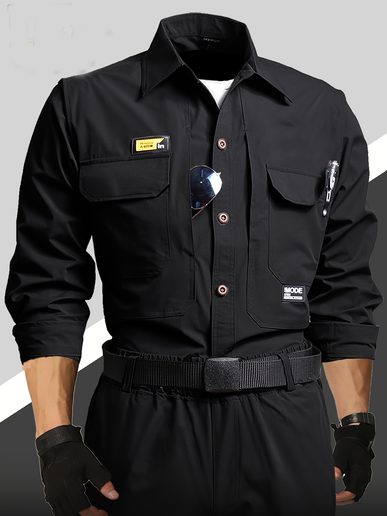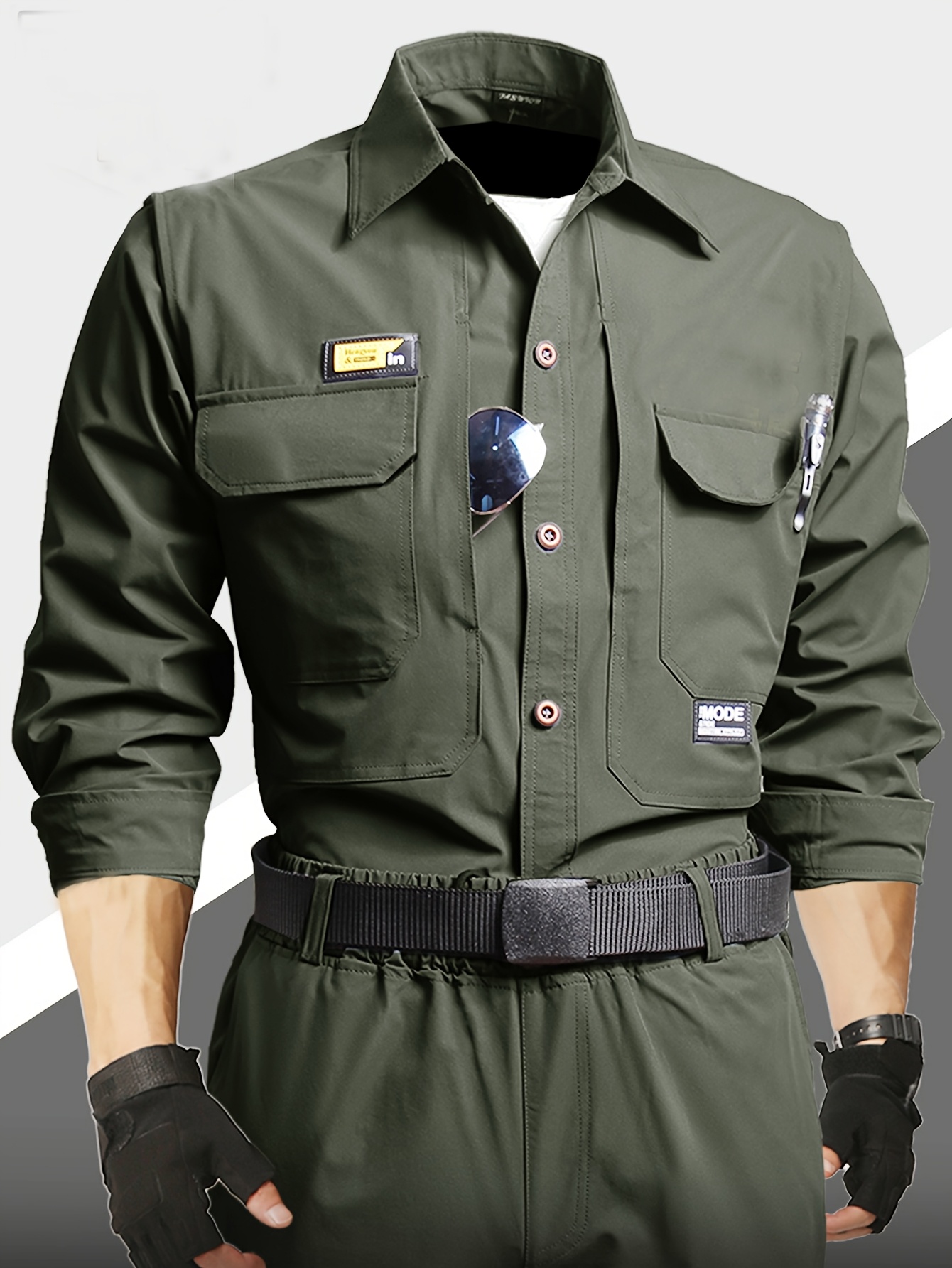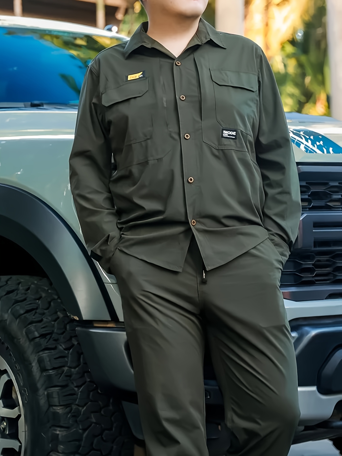 Summer Suit Ice Sliky Fiber Fabric Quick-Drying Workwear Suit for Men, Light, Breathable, Elastic, Casual Workwear with Multiple Pockets, Outdoor Shirt