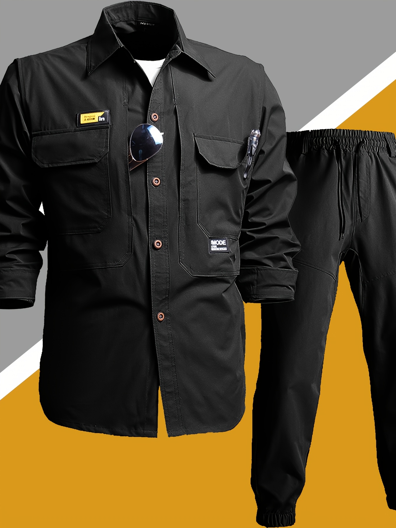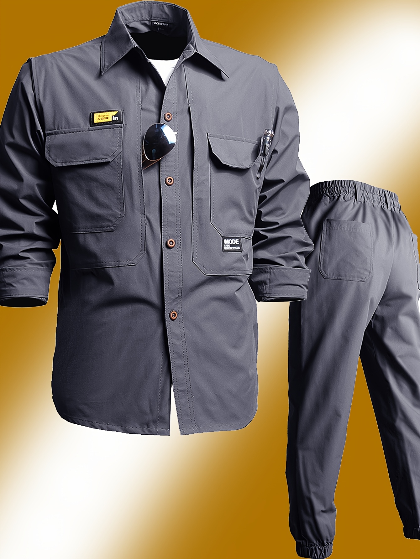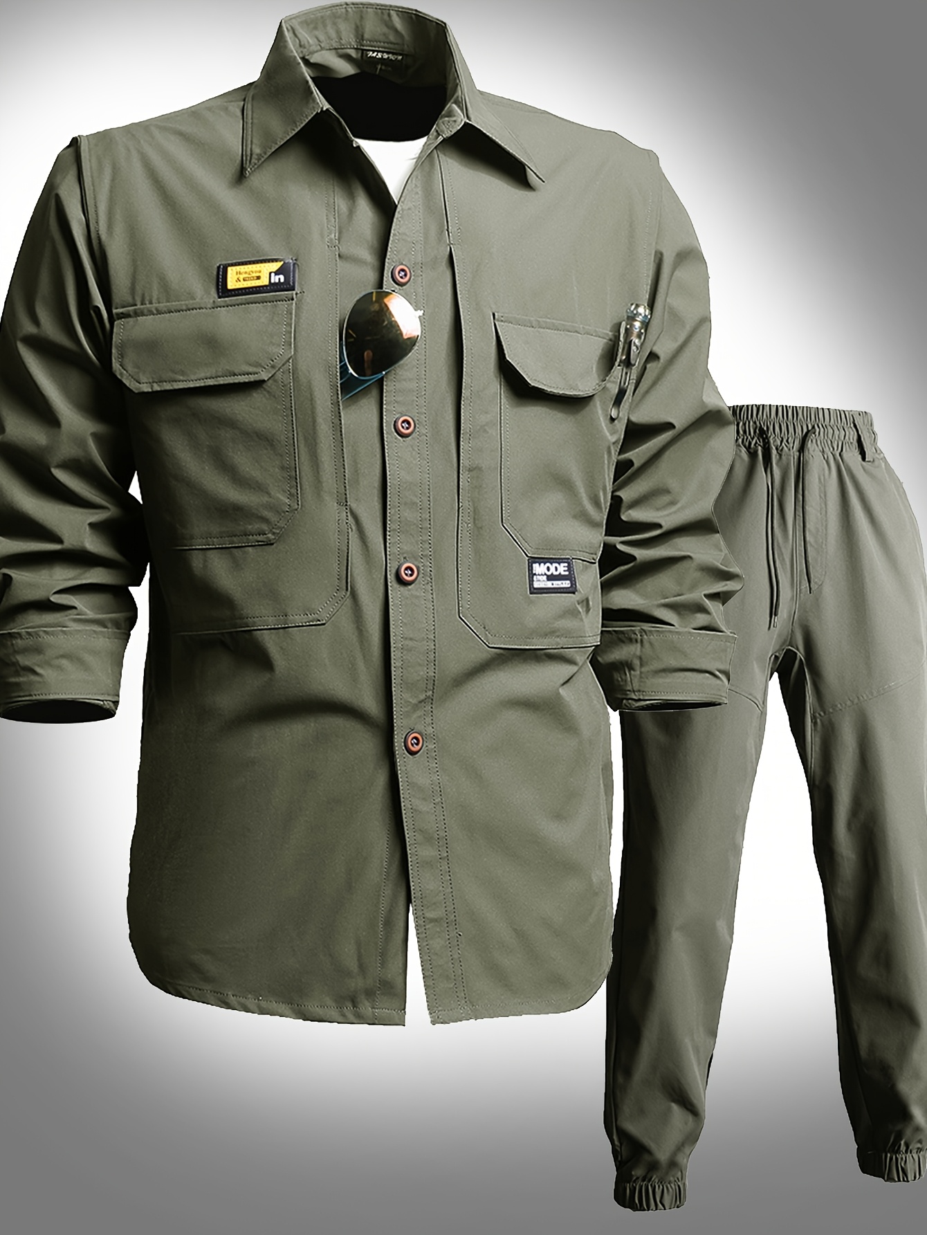 Summer Suit Ice Sliky Fiber Fabric Quick-Drying Workwear Suit for Men, Light, Breathable, Elastic, Casual Workwear with Multiple Pockets, Outdoor Shirt