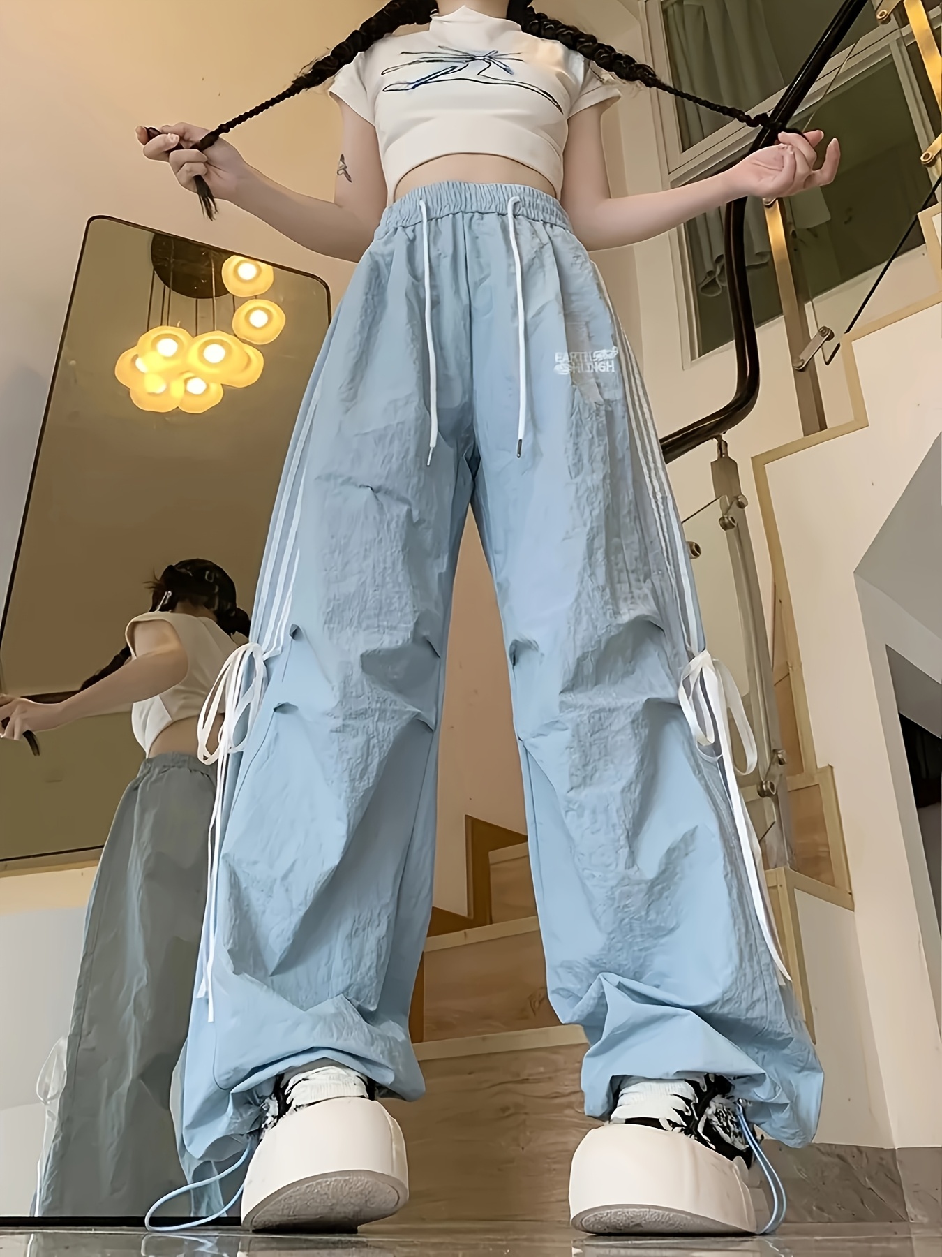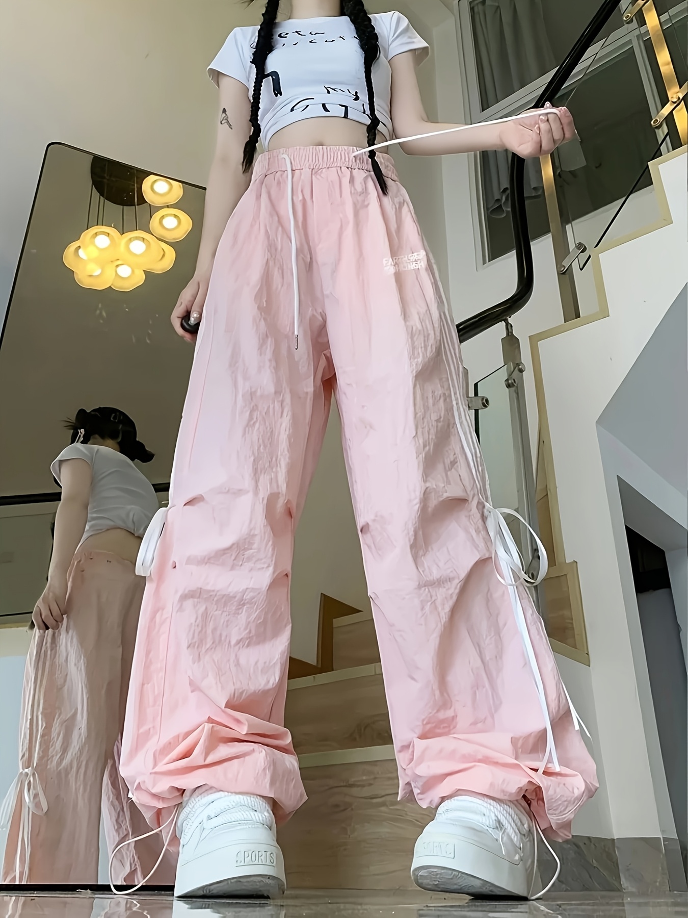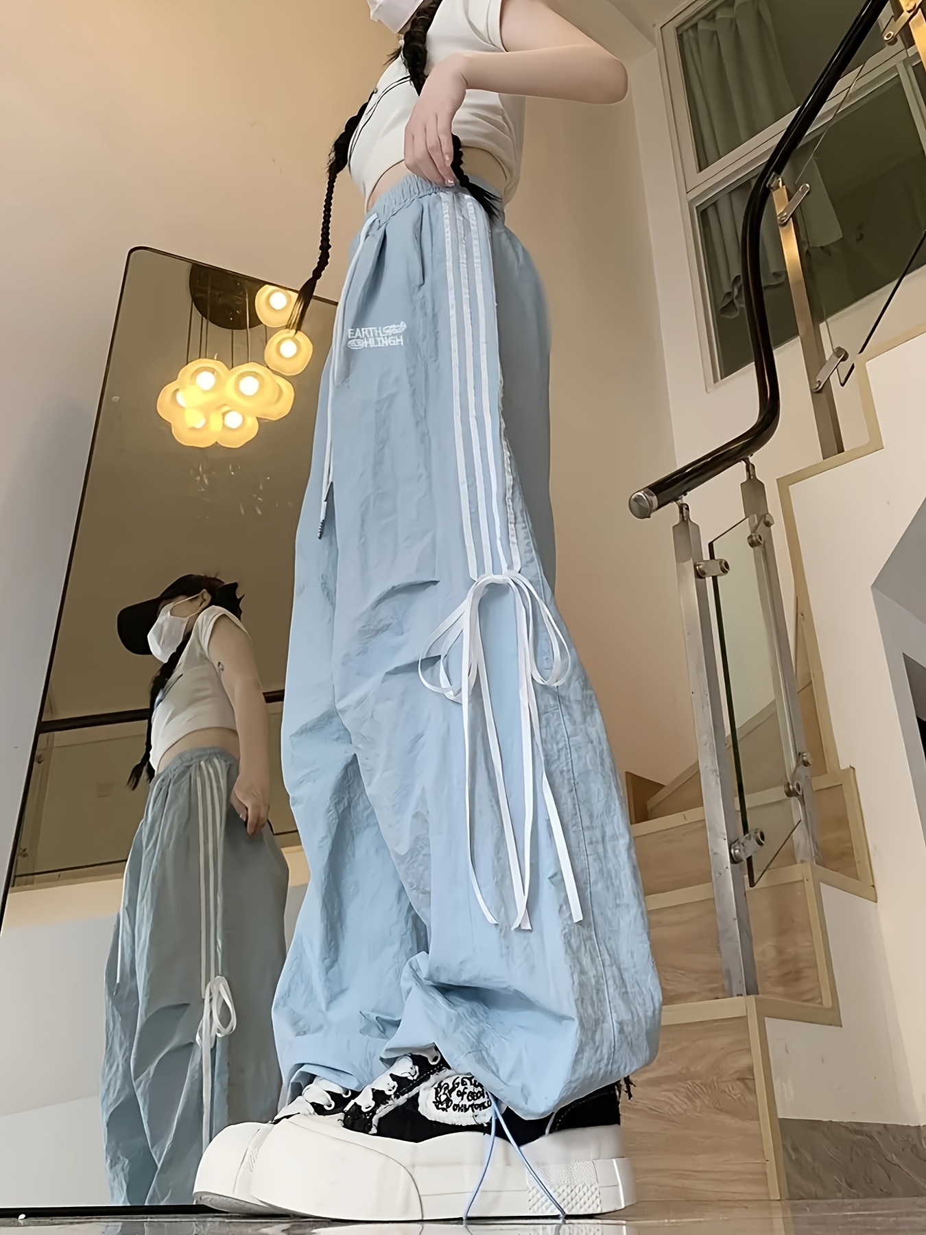 Home Women's Athleisure Sweet Bow Striped Casual Pants for Women, New Spring And Summer Dopamine Wide Loose-Fit Casual Work Pants, Striped Bow Colorful Casual Pants for Women, Wide-Leg Pants for Sports