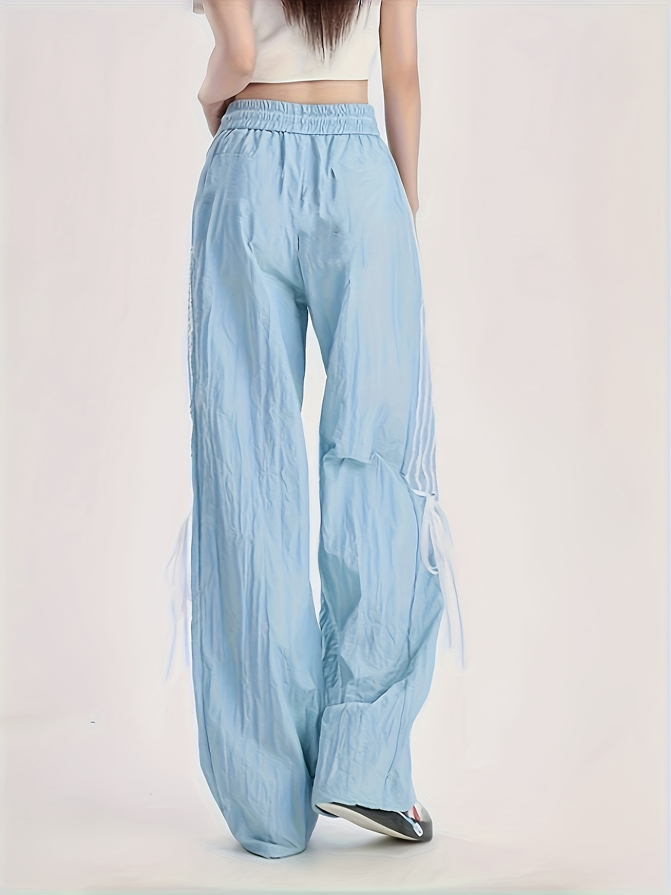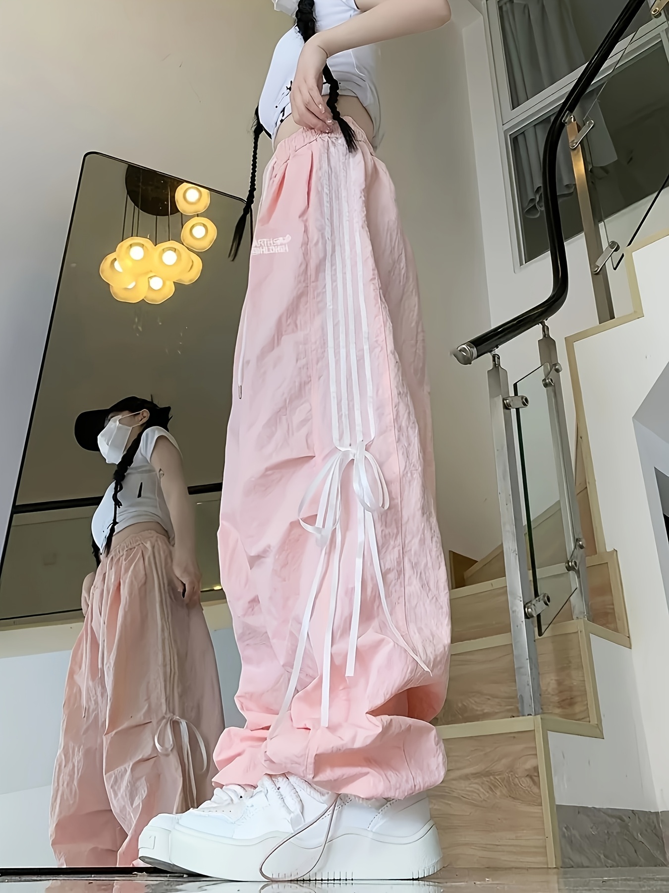Sweet Bow Striped Casual Pants for Women, New Spring And Summer Dopamine Wide Loose-Fit Casual Work Pants, Striped Bow Colorful Casual Pants for Women, Wide-Leg Pants for Sports