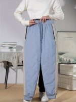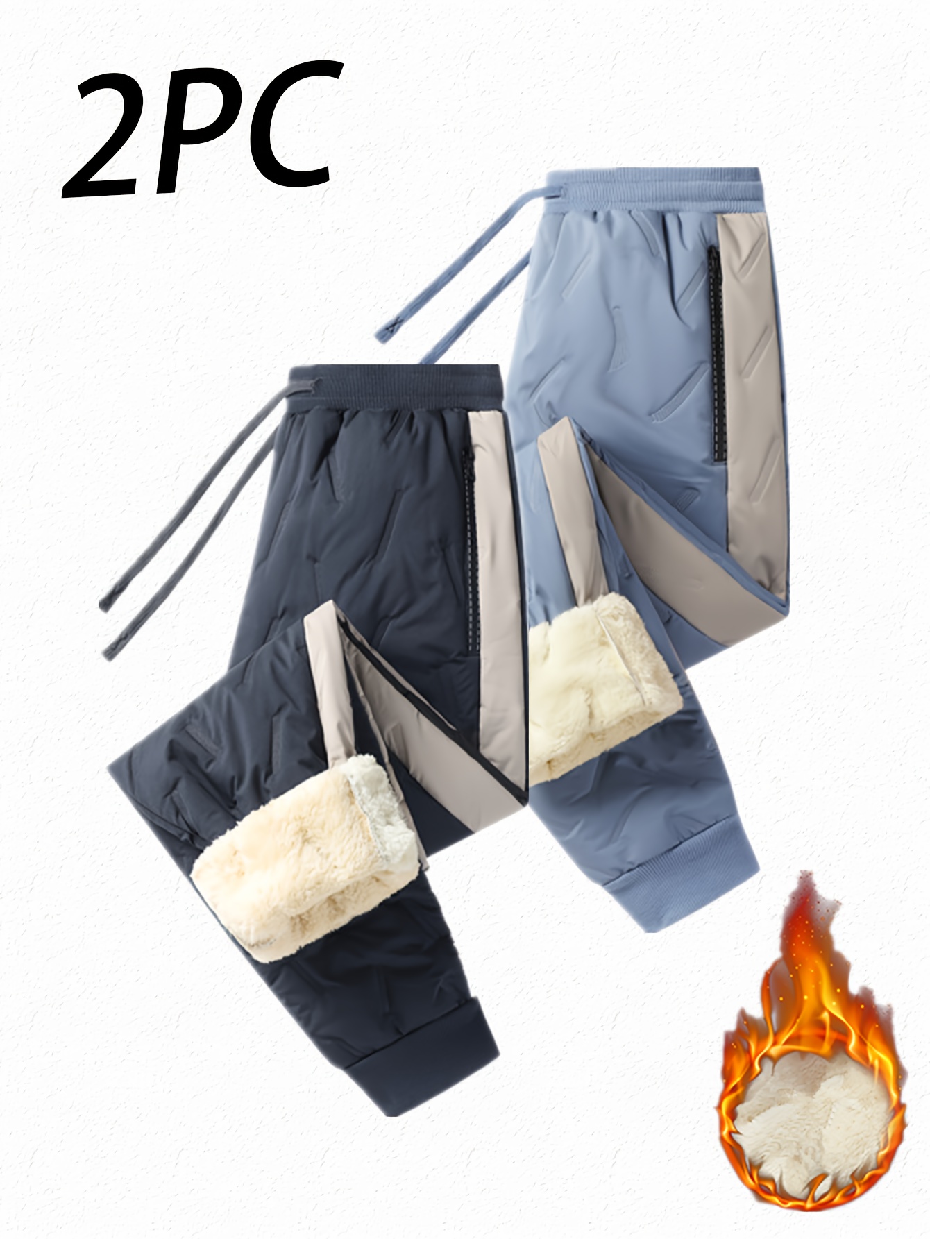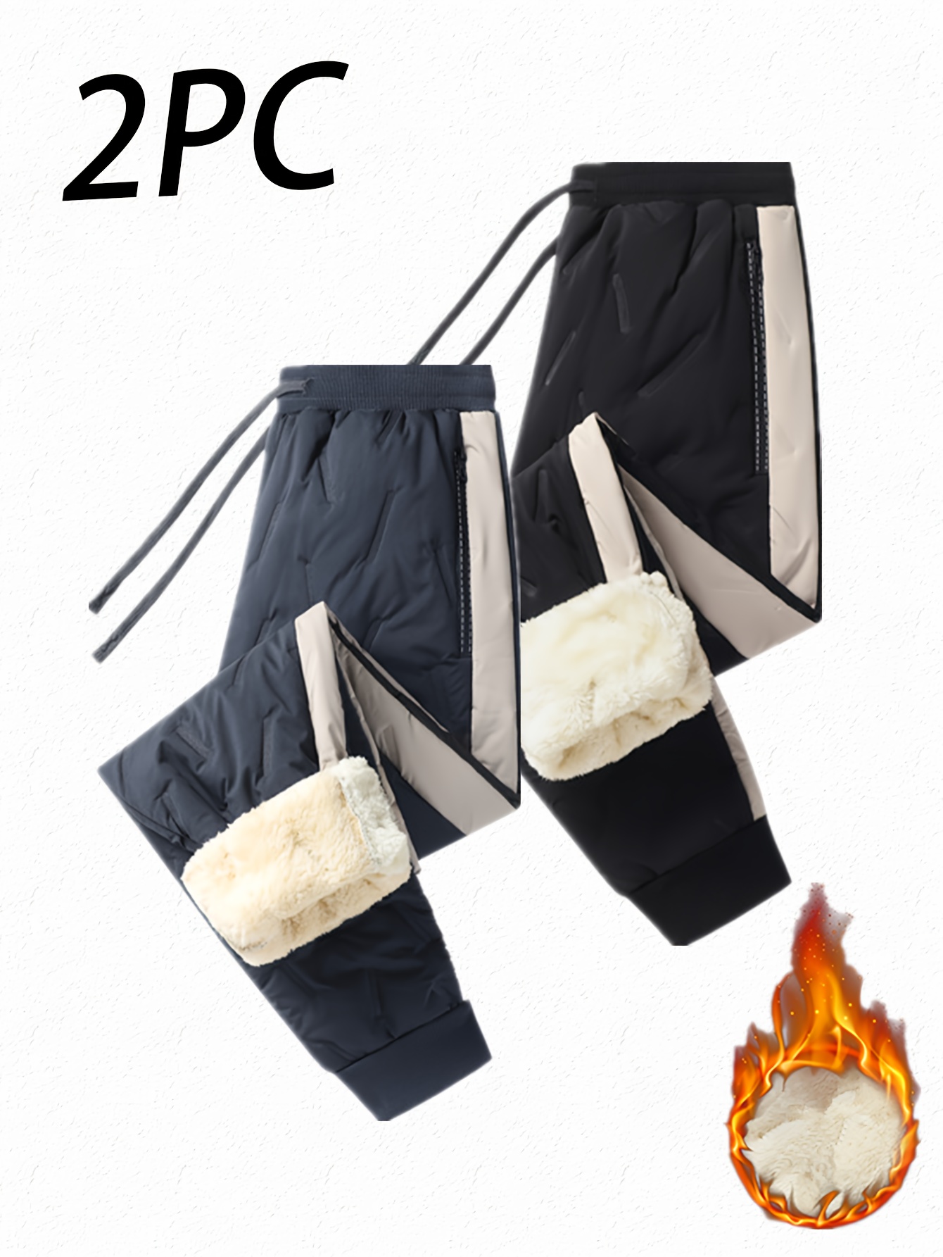 Two-Pack Women’s Fleece-Lined Winter Warm Pants – Thickened Windproof Drawstring Casual Trousers with Side Zip Pockets, Hem Trim for Outdoor Activities, Ladies Fallu002FWinter Clothing in Contrast Color Design, Pants For Women Winter, Lightweight Pants For Women, Women Winter Pants, Winter Trousers For Women, Comfy Pants Women