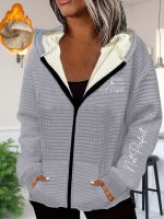 Women’S Casual Waffle Hooded Zip-Up Jacket – Thick Fleece-Lined, Geometric Pattern, Machine Washable, Black with White Trim, Long Sleeve, Fallu002FWinter Outerwear, Casual Winter Wear | Hooded Jacket | Jacket, Women’ Plu Size Long Fur Coat Red, Fur Coat For Women Plu Size, Fur Coat Women Plu Size, Plu Size Fur Coat, Royal Blue Winter Jacket For Women, Jacket For Women Fall, Hooded Anorak, Thermalu002Fheavyweight Winter Jacket For Women