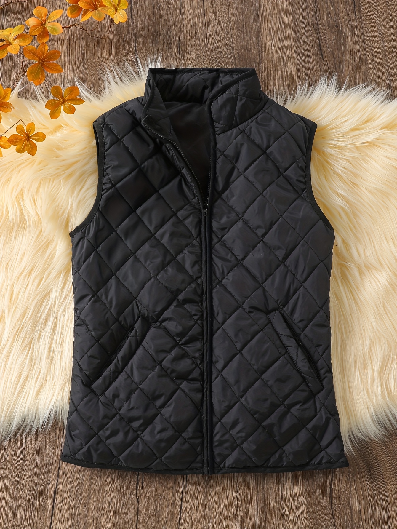 Women’S Sleeveless Vest – Lightweight Warm Jacket for Fallu002FWinter, Stand Collar Zip-Up Coat with Flared Hem, Non-Stretch Fabric for Beach, Gym, Outdoor Activities – Elegant Casual Outerwear, Gym Wear, Sporty Design, Durable Construction