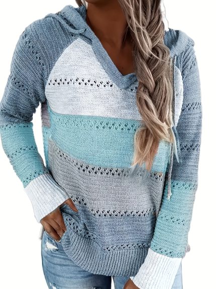 Women’S Outdoor Long Sleeve Color Block Pulloveru002FCardigan – Striped V-Neck Sweatshirt Jacket with Belly Support, Slim Fit Casual Sporty Top for Fallu002FWinter, Hiking & Casual Attire, Winter Camping Gear, Durable Outdoor Wear, Hiking Apparel, Sporty Design, Warm Fabric, Women